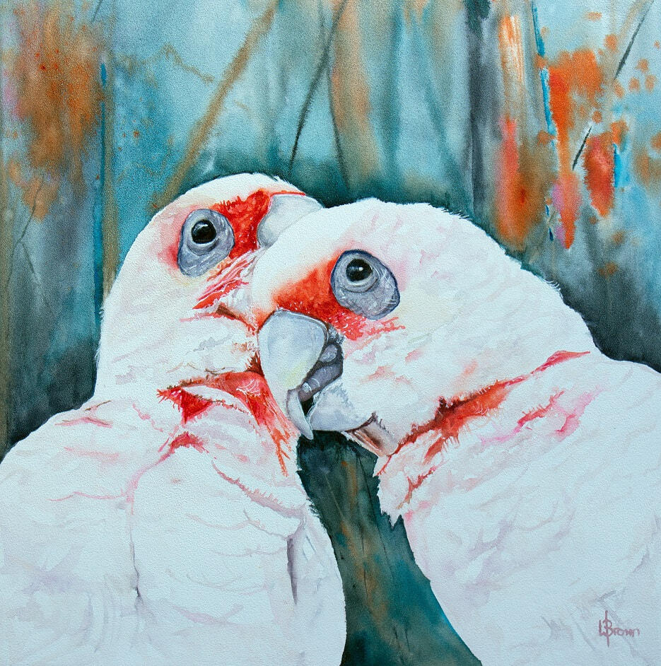 Long billed Corella painted in watercolour on a specially prepared wooden cradled panel requires a slightly different pigment application to painting on paper which is playful and exciting. The washes blend beautifully. Sealed and protected with a wax varnish allowing it to be hung without additional framing or glass.