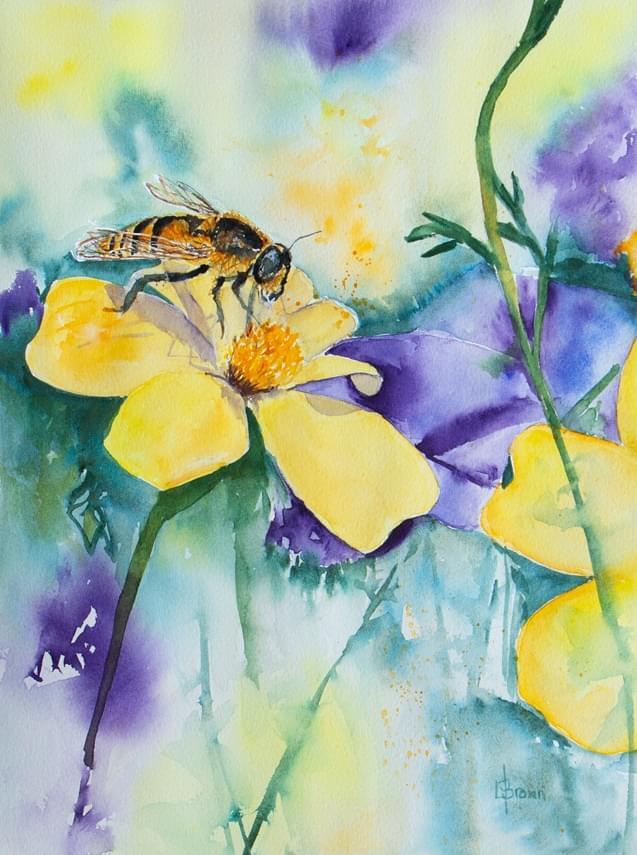 Yellow and Purple petals, a complimentary colour palette provides a colourful and sunny spot for this visitor.