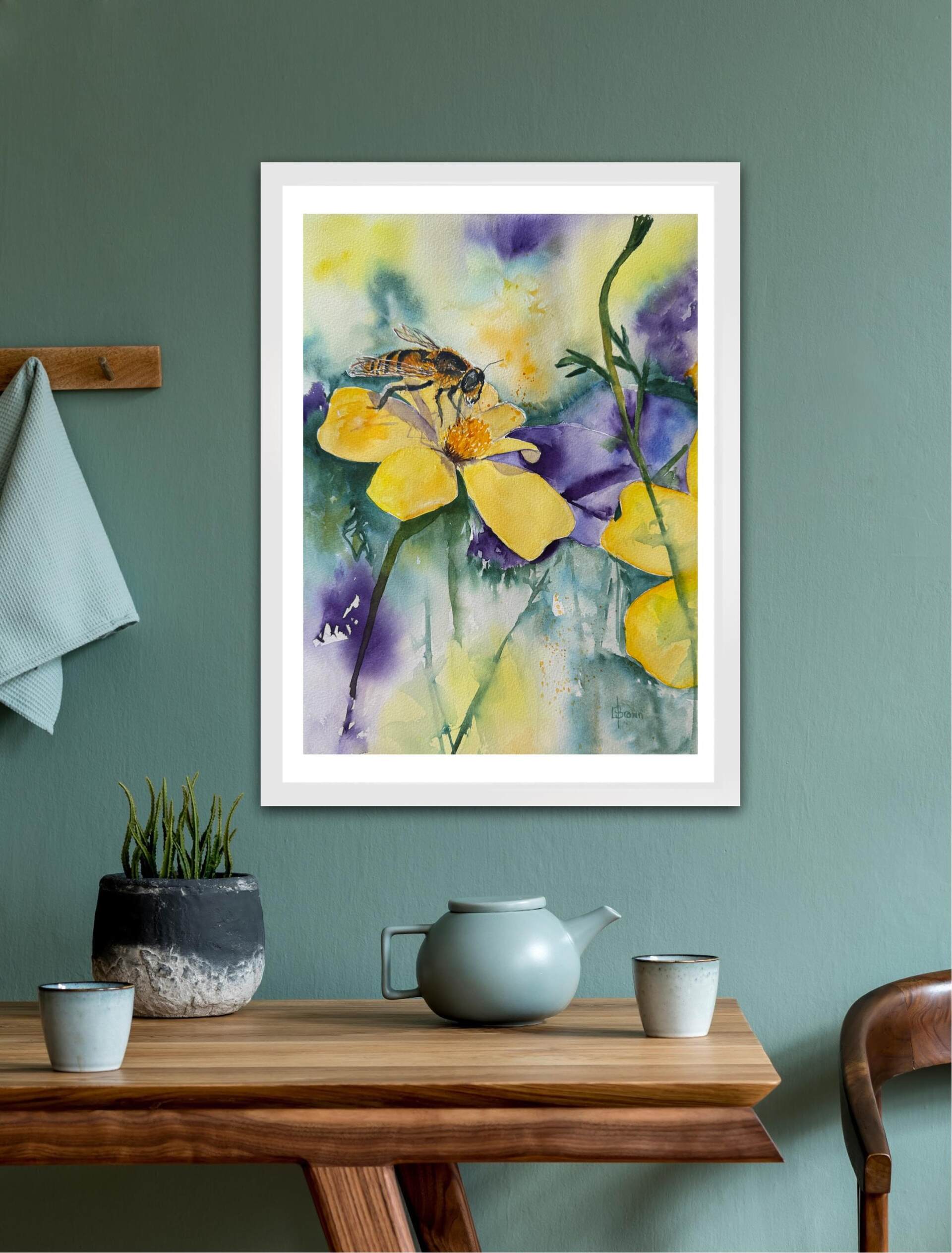 Unframed work with artist grade pigments on 100% cotton rag watercolour paper ready for your own framing choice under glass.