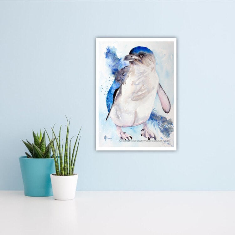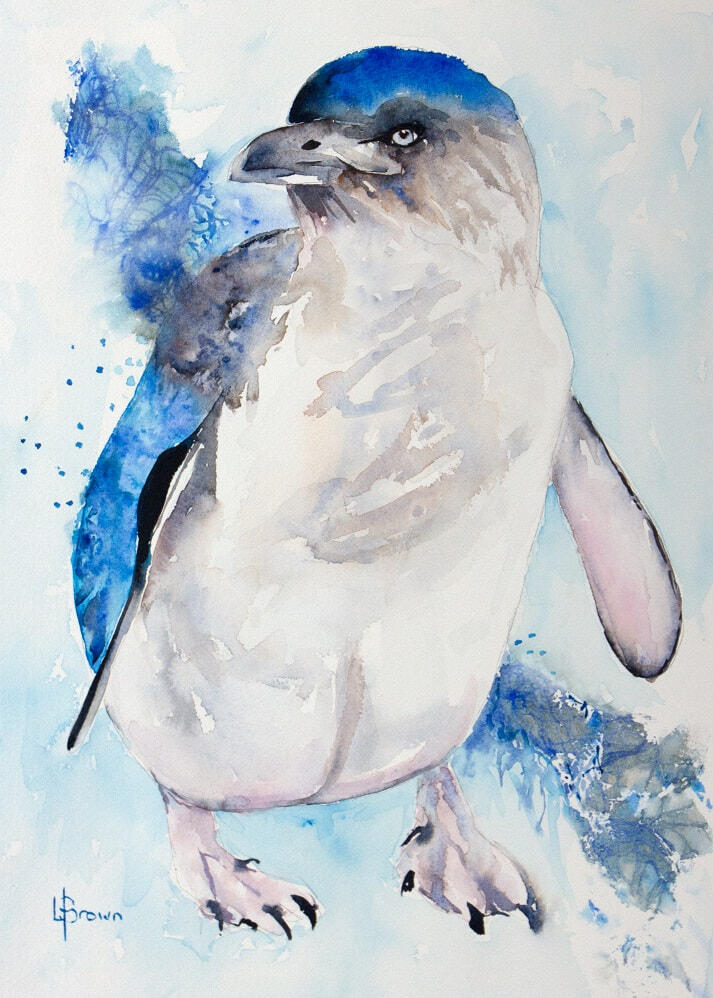 I love painting our Fairy Penguins often in threes and fives but this little fellow is chillin out by himselfUnframed Original painting, artist grade pigments, 100% cotton rag paper, ready for your own choice under glass.
