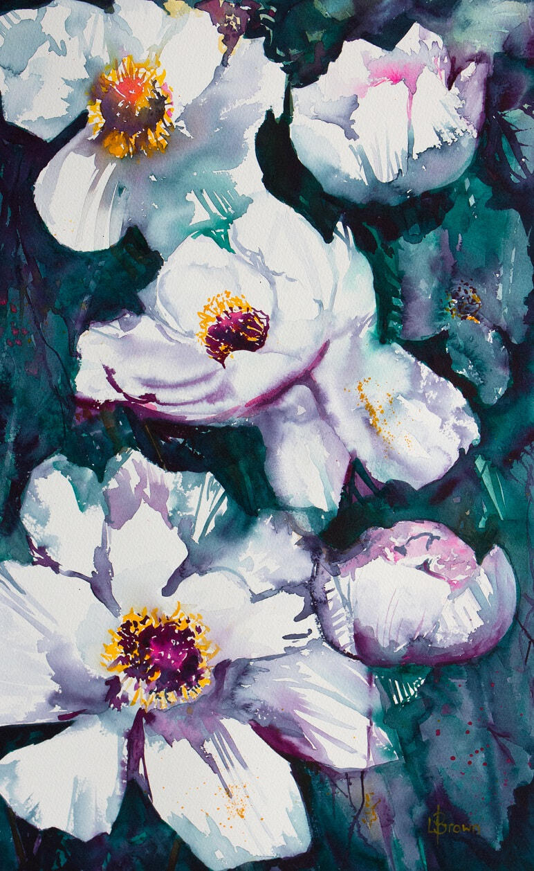 I love to create a floral work without an initial drawing and compose intuitively with one brush mark leading to the next but equally enjoy the challenge of more marathon works that require careful observation and many glazes of pigment.