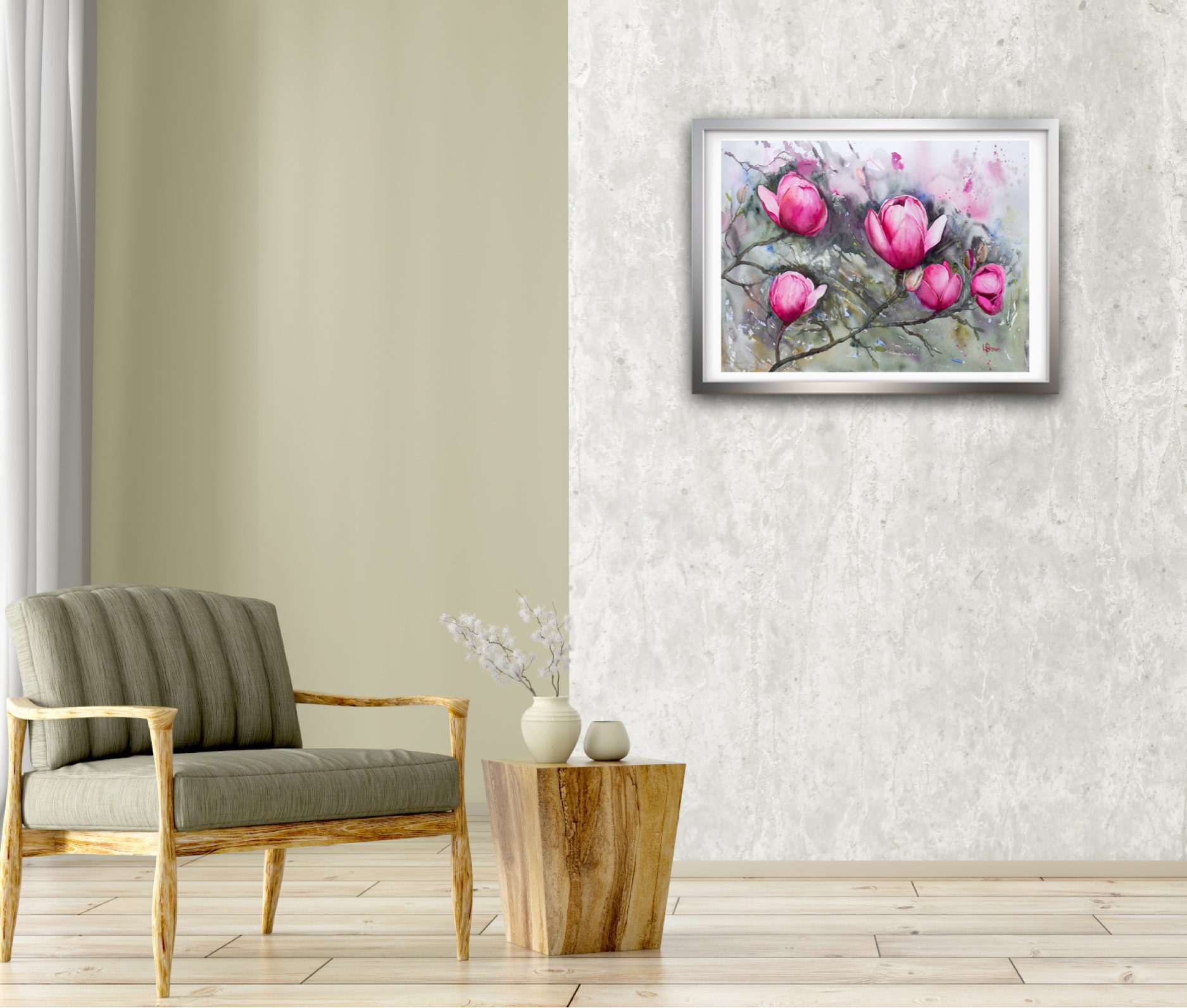 The goblet shape Black Tulip Magnolia are beautiful blooms on bare branches, fragrant and giving us a lovely show of colours from almost black to shades of reds.Original Sold