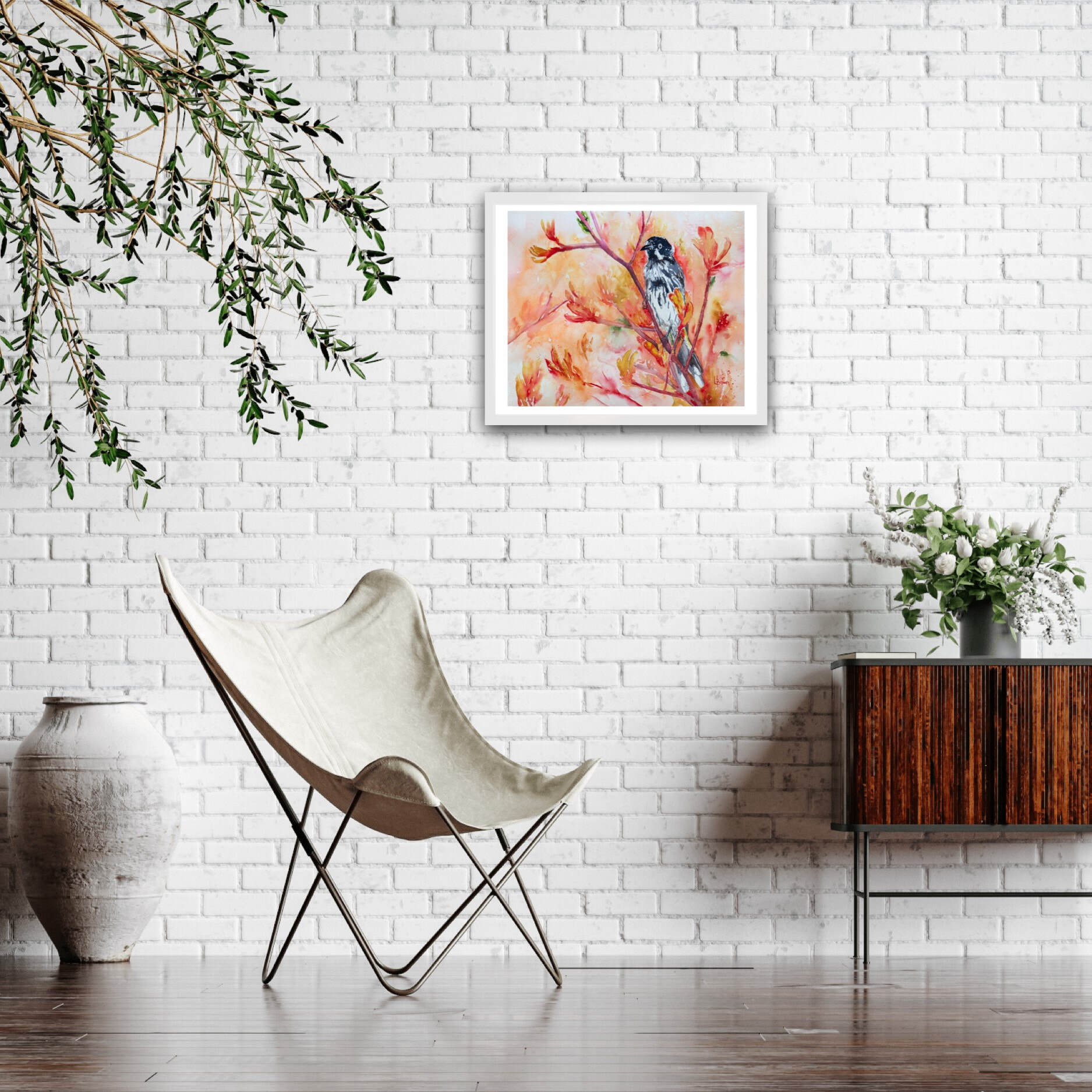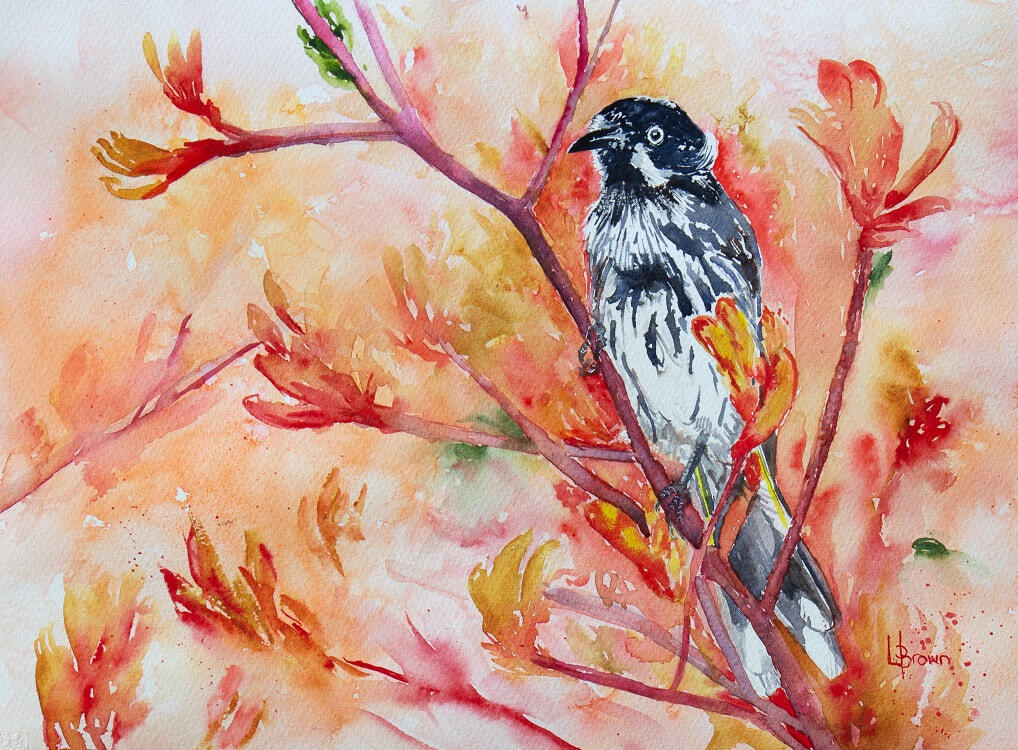 Inspired by collection of images by PhilShar Photography of Honey Eater enjoying the rich reds and golds of the Kangaroo Paw