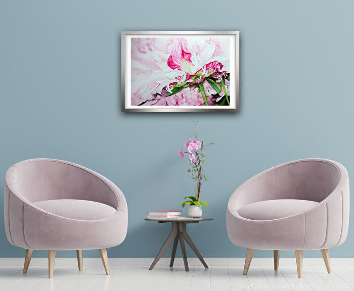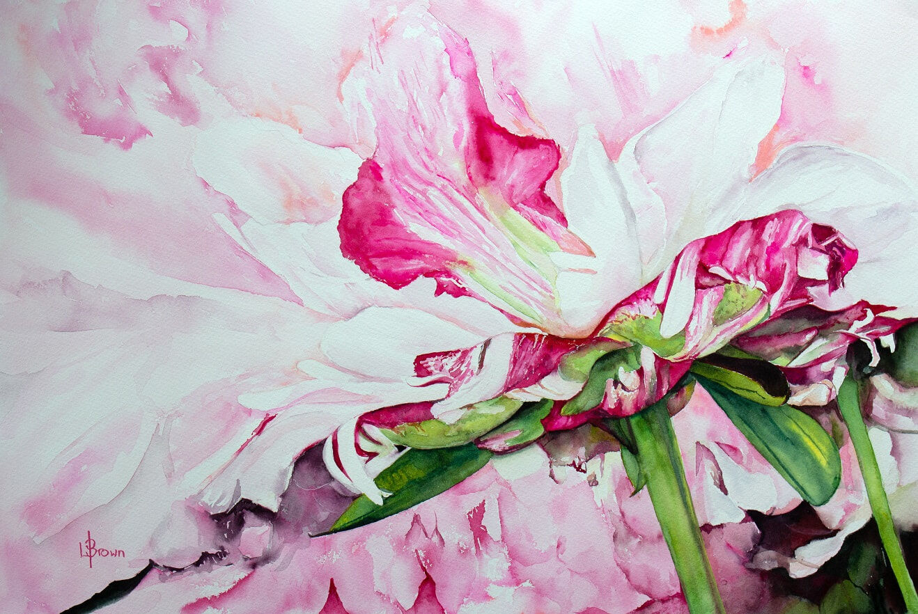 It is always "love at first sight" when the Peonies bloom. This work was inspired by beautiful photography from Theresa Dale and I was taken with the up close perspective and so with pretty first washes it enabled me to create a larger work.