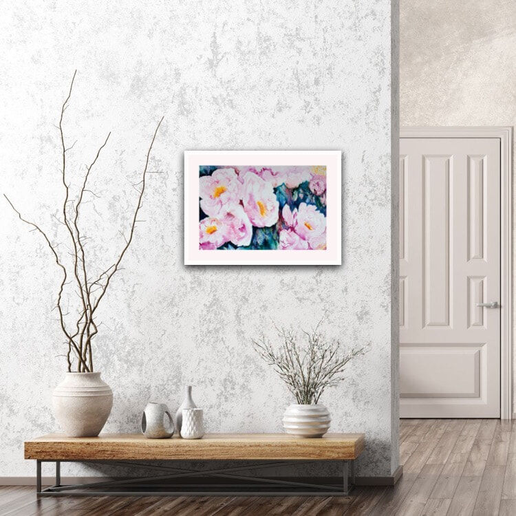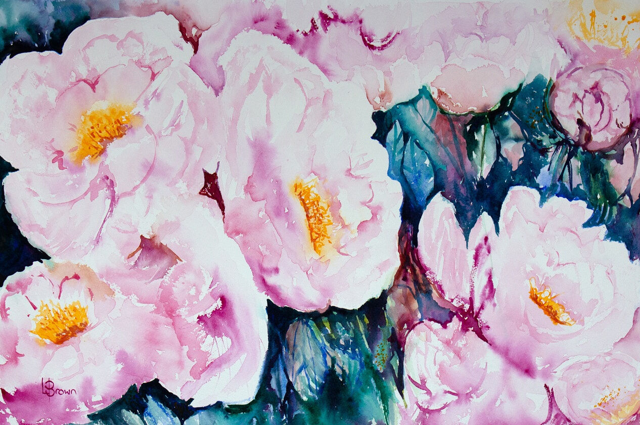 Inspired by a decadent treat of beautiful Sarah Bernhardt Peonies. I enjoyed creating this original watercolour in a free, intuitive style with no pre drawing just composing one petticoat frill at a time.