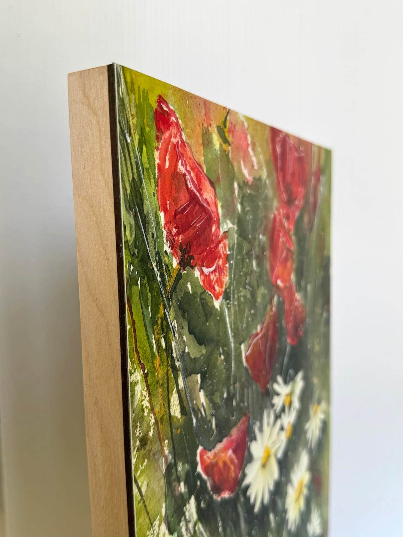 Protected with UV Archival spray and waxed varnish allowing it to be hung without additional framing or glass.