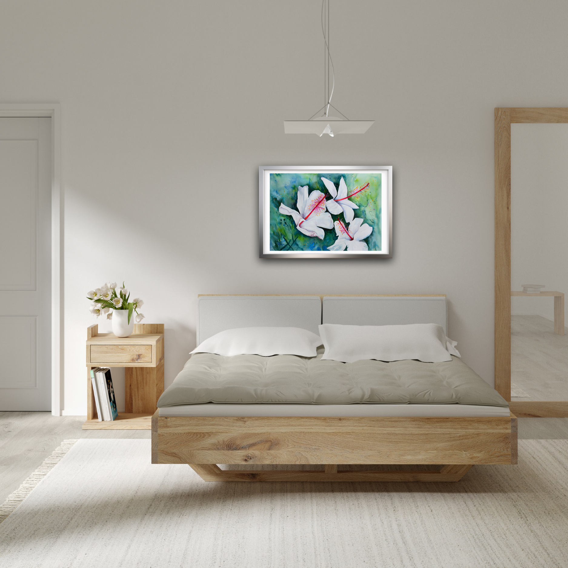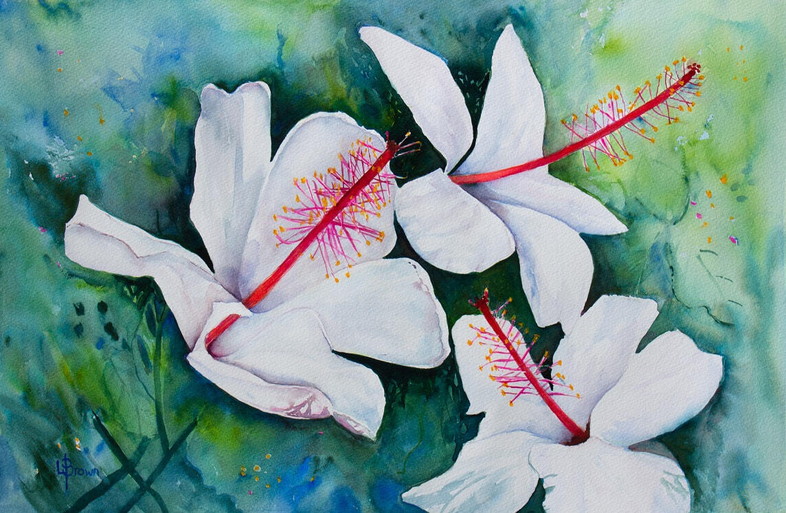 It is said the white Hibiscus can have a beautiful fragrance and whilst this original work was being created the world has been in travel shutdown so a trip to the tropics to enjoy its perfume had to just be imagined.