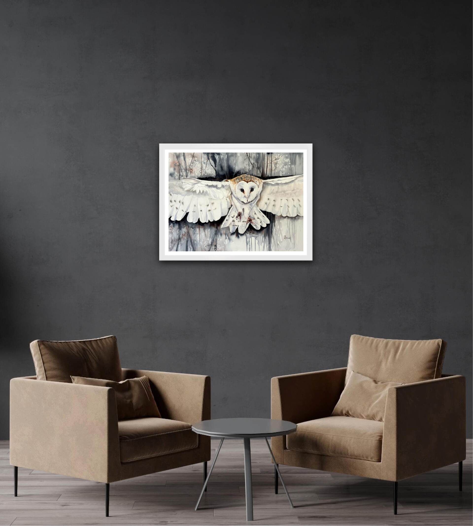 Work is unframed size on 100% cotton rag paper using finest grade artist pigment ready for your own choice under glass. Final size is determined by the addition of your chosen matboard and frame