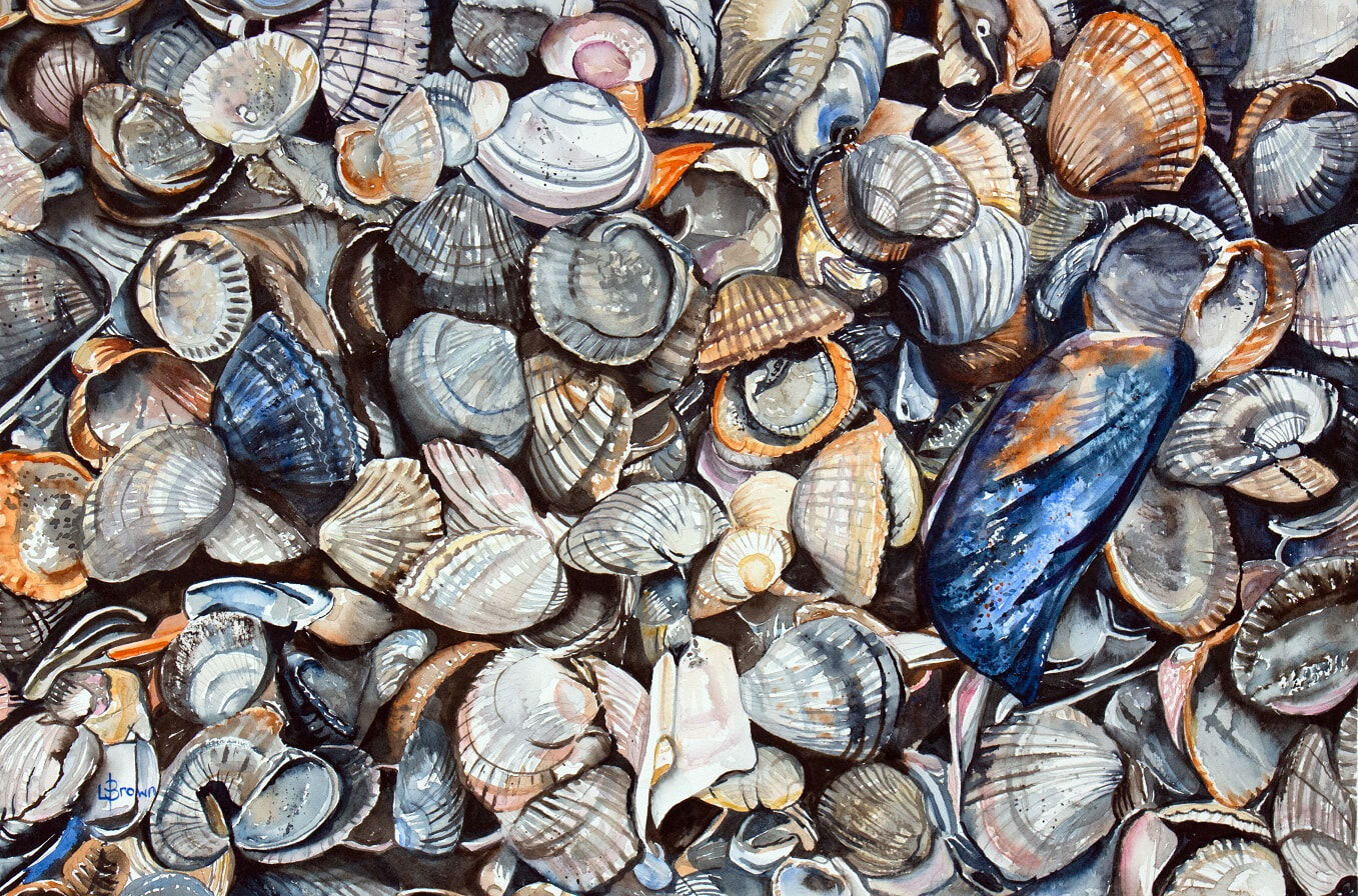 I enjoy the process of painting lots of complex shapes, watercolours that take many hours over several days to complete. This work is created with a limited palette of 4 colours and part of the challenge is to retain the white of the paper without having the safety net of using a resist such as masking fluid.